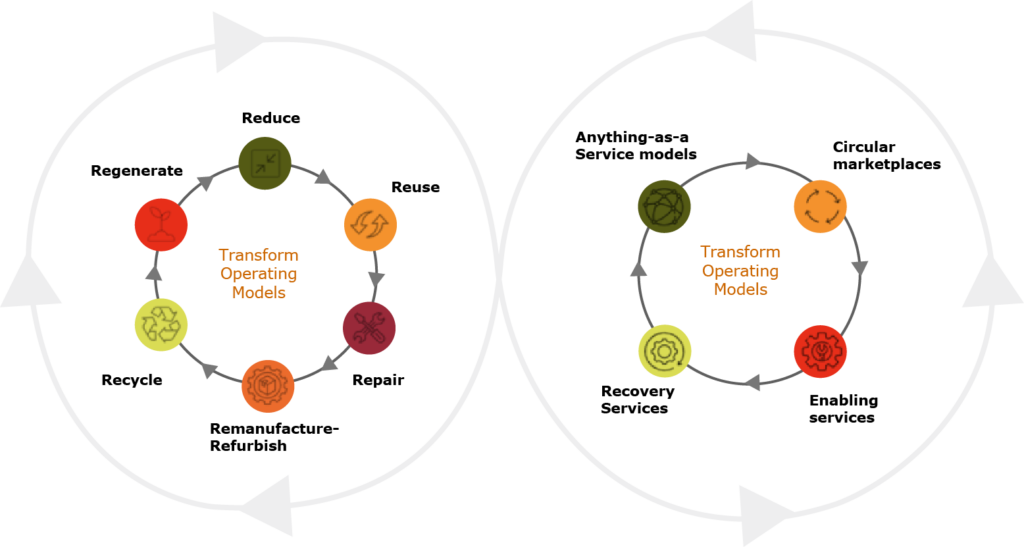 - Resource efficiency: Circularity enables new operating and business models so that all materials can be easily reused, repaired, remanufactured, recovered, and recycled.
